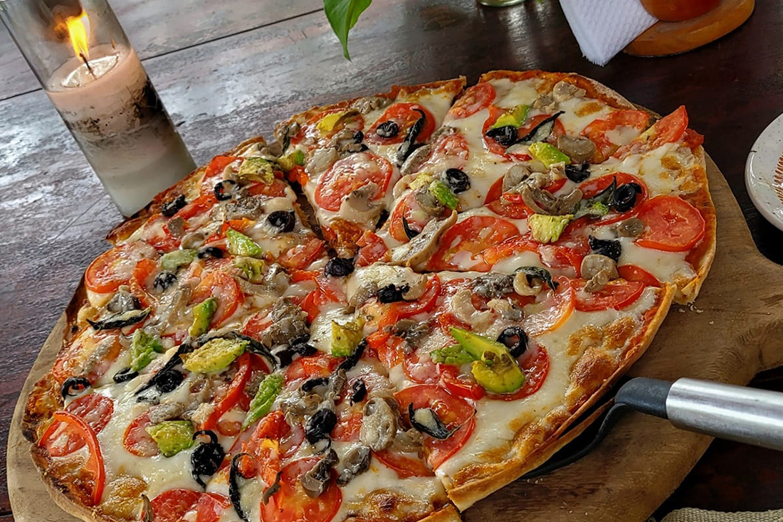 Pizzas artesanales de mariscos, vegetarianas y variadas a tu gusto. Sacadas de nuestro horno artesanal de leña.