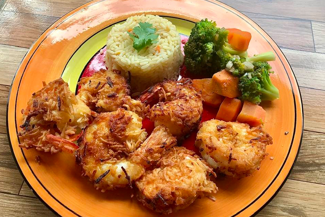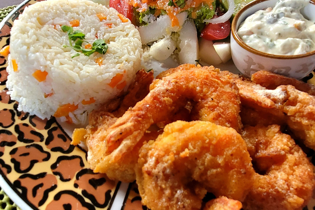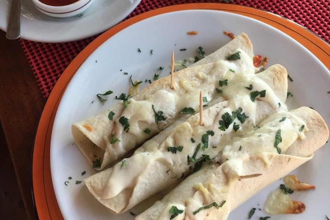 Hamburguesas, papas fritas, Ensaladas, pescado frito, camarones fritos, panqueques, crepas frescas, cocteles de frutas, tortillas de harina, nachos, Quesadillas, Paninis.